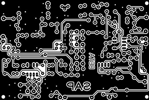 La placa mide 80 x 120 mm y lleva todos los componentes excepto los potenciómetros, conmutadores y la resistencia R6 que va soldada directamente del potenciómetro V2 a masa. Ver figuras 7 , 8, 9 y 10.
